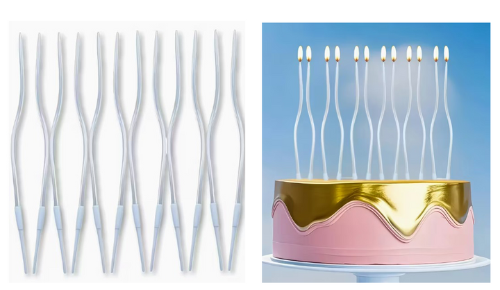 Set 6 Lumanari pentru Tort, Ondulate, Lungi, 12 cm, Alb perlat