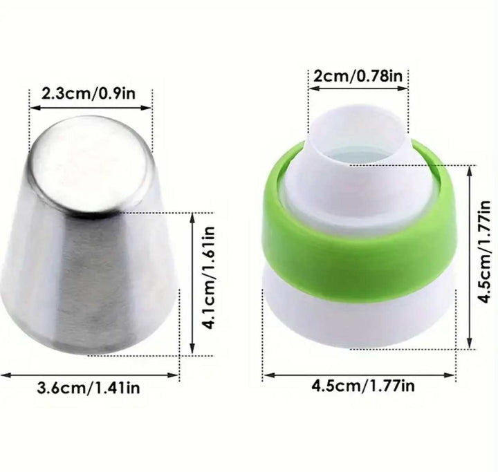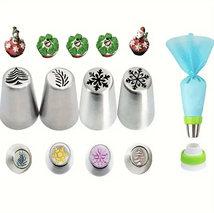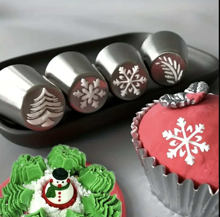 Setul conține 4 duze rusești din oțel inoxidabil, ideale pentru decorarea prăjiturilor și a torturilor cu modele de sărbătoare. Formele includ fulg de nea, brăduț de Crăciun și alte motive festive. Perfecte pentru a crea decorațiuni spectaculoase din frișcă, cremă sau glazură.